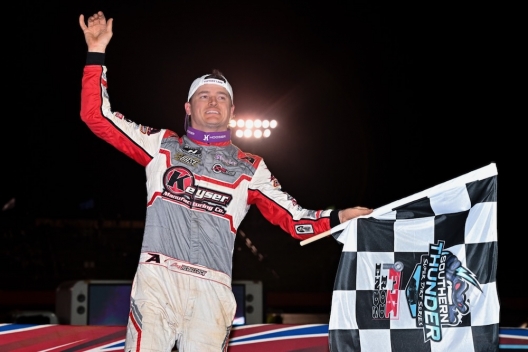 Cory Hedgecock celebrates his fourth Southern Thunder victory this season.
