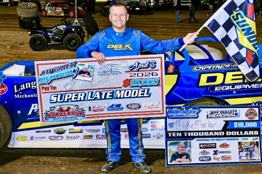 What won the race: Overtaking Michael Chilton for the lead off the turn-four cushion on lap 26, fifth-starting Mike Marlar of Winfield, Tenn., controlled the remainder of Friday's 50-lap Jeff Gullett Memorial at Ponderosa Speedway. Marlar beat Jason Jameson by 1.396 seconds for the $10,000 payday, his fourth career Northern Allstars Late Model Series victory and first in nearly 19 years.