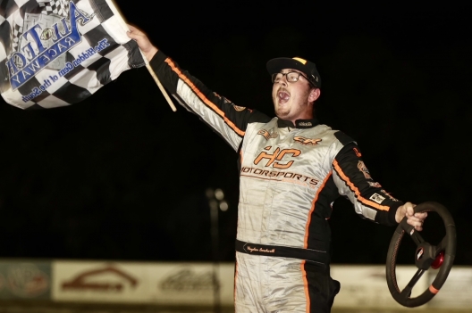 Hayden Cardwell celebrates a $30,000 victory at All-Tech Raceway.