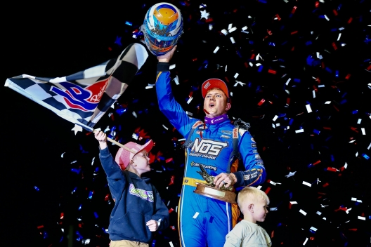 Nick Hoffman and kids celebrate his third career DIRTcar Nationals victory.
