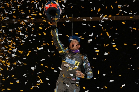 Sam Seawright led all eight laps from the pole and beat Tyler Erb by 0.450 of a second to win the first heat race. Fourth-starting Ethan Dotson finished third with sixth-starting Dustin Sorensen taking fourth. Dennis Erb Jr. and Tim McCreadie join them in punching their ticket into the night’s 60-lap main event. … Nick Hoffman overcame a mid-race restart to earn a flag-to-flag victory in the second heat, crossing the line 1.557 seconds ahead of Brent Larson. The night’s first yellow flag flew on the sixth lap when Boom Briggs over-rotated at the entrance of turn one, collecting Christian Augspurger and Trey Mills, as Matthew Larson spun to avoid; all four drivers continued with Briggs and Mills earning transfer spots into the $20,000-to-win Swamp Cabbage finale. … Second-starting Bobby Pierce dominated the third and final heat race, leading all eight laps and winning by 3.452 seconds over polesitter Ryan Gustin. Fourth-starting Daulton Wilson slipped by Drake Troutman for third, relegating Troutman to fourth. Tristan Chamberlain and Jake Timm each earned starting spot in the feature.