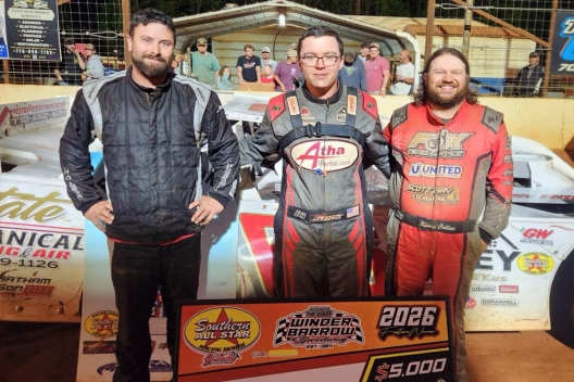 Winner's sponsors: Kirk’s Longhorn Chassis is sponsored by Atha Equipment Rental, Monroe Automotive and Tire, Foy Septic, The Towers at Snows Mill, J Key Homes, State Mechanical Heating & Air, Christie Dove Insurance, Expo Homes, Chatham & Sons LLC, SKJ Performance Engineering, GW Performance and Ultimate Racing Helmets.